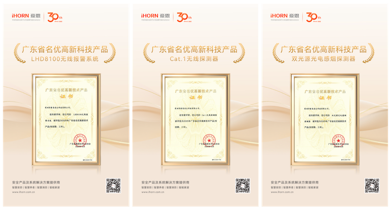 近日,中安科子公司深圳市豪恩安全科技有限公司(以下简称“豪恩”)喜报频传。在广东省高新技术企业协会发布的《2025年第二批广东省名优高新技术产品拟通过名单公示》中,豪恩旗下“LHD8100无线报警系统”、“4G Cat.1可燃气体探测器”及“双光源光电感烟探测器”系列产品成功入选,彰显其在安防领域持续创新的技术实力与产品领先性。